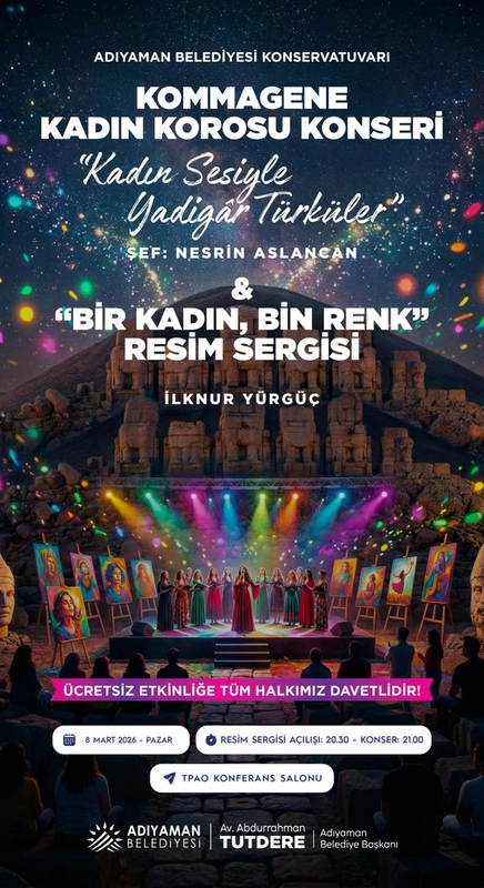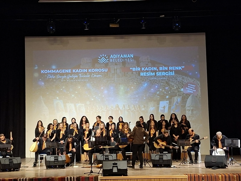 Adıyaman Belediyesi Konservatuvarı bünyesinde faaliyet gösteren Kommagene Kadın Korosu'nun konseri şef Nesrin Aslancan yönetiminde gerçekleştirildi. Gecede ayrıca sanatçı İlknur Yürgüç'ün hazırladığı "Bir Kadın, Bin Renk" isimli resim sergisi de katılımcıların beğenisine sunuldu.