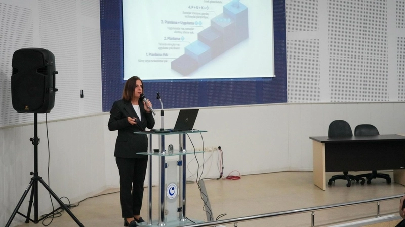 Toplam Kalite Koordinatörü Dr. Öğr. Üyesi Cavidan Gül Varış, KİDR sürecine ilişkin kapsamlı bir bilgilendirme sunumu gerçekleştirdi. Sunumda, raporlama sürecinde kurumsal veri bütünlüğünün sağlanması, kanıt temelli yaklaşımın güçlendirilmesi ve birimler arası koordinasyonun etkin şekilde yürütülmesi konuları değerlendirildi.