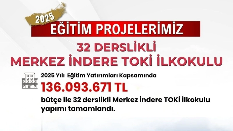 "2025 yılı eğitim yatırımlarımız kapsamında; Adıyaman'ın yeni yaşam alanı İndere'de geleceğimize umutla baktığımızda çok özel bir adımı daha hayata bağlıyoruz. Derslikli TOKİ İndere İlkokulu ve Derslikli TOKİ İndere Ortaokulumuzun kapılarını eğitim-öğretime açmanın mutluluğunu yaşıyoruz."