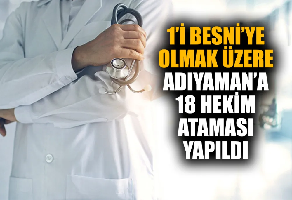 Gerçekleştirilen hekim atamalarında, Besni İlçe Sağlık Müdürlüğüne 1 tabip, Adıyaman Eğitim ve Araştırma Hastanesine 1 tabip, Gerger Devlet Hastanesine 1 Tabip, Gerger Toplum Sağlığı Merkezine 1 Tabip, Gölbaşı İlçe Sağlık Müdürlüğüne 1 tabip, Kahta İlçe sağlık müdürlüğüne 1 tabip olmak üzere 6 hekim ataması yapıldı.