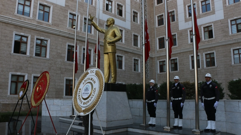 10 Kasım Atatürk'ü Anma Programı, Adıyaman Valisi Dr. Osman Varol, Garnizon Komutanı Albay Mustafa Kürşat Doğan ve Belediye Başkanı Abdurrahman Tutdere'nin Atatürk Anıtı'na çelenk sunulmasının ardından sirenler eşliğinde iki dakikalık saygı duruşu ve İstiklal Marşı'nın okunması ile başladı.