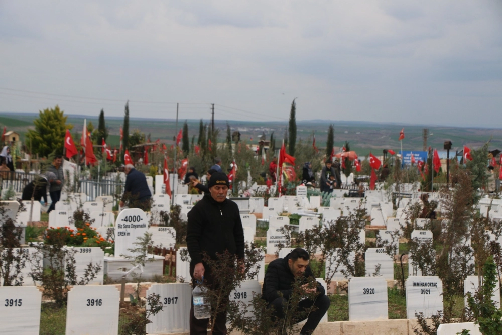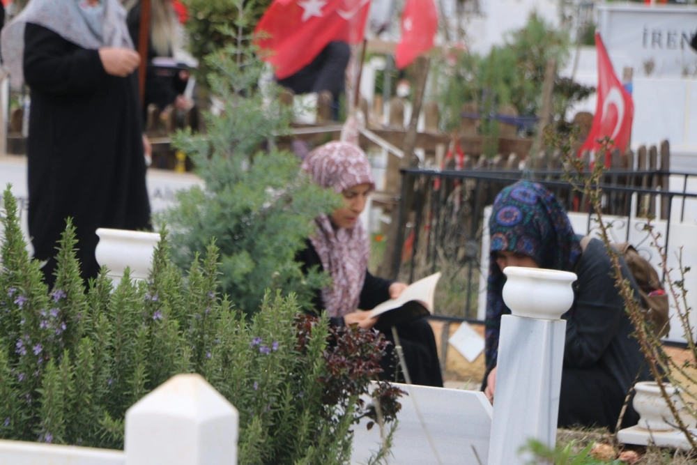 Yakınlarının mezar taşlarını temizleyen ve çiçek bırakan aileler, zaman zaman gözyaşlarına hakim olamadı. Sessizliğin hakim olduğu mezarlıkta, depremde hayatını kaybedenler için bol bol dua edildi.