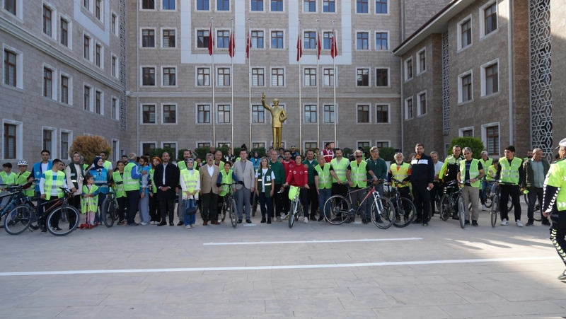 Sağlıklı yaşamı teşvik etmek ve farkındalık oluşturmak amacıyla düzenlenen etkinlikte katılımcılar, belirlenen güzergâh boyunca bisiklet sürerek hem sporun hem de Cumhuriyet sevincinin birleştirici gücünü yaşadı.