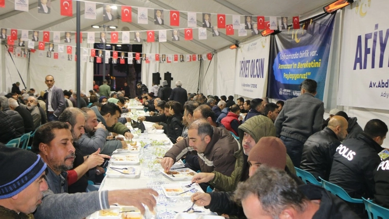 Adıyaman'da Ramazan ayının ilk orucu 19 Şubat 2026 Perşembe günü kurulan iftar sofralarıyla açıldı. Kent Meydanı'nda kurulan iftar çadırında yüzlerce vatandaş ilk iftarın heyecanını yaşadı. Dualar eşliğinde oruçlarını açan vatandaşlar, birlik ve beraberlik mesajı verdi. Vatandaşlar ayrıca, Adıyaman Belediyesi tarafından organize edilen iftar çadırı için Adıyaman Belediye Başkanı Abdurrahman Tutdere'ye teşekkür etti.