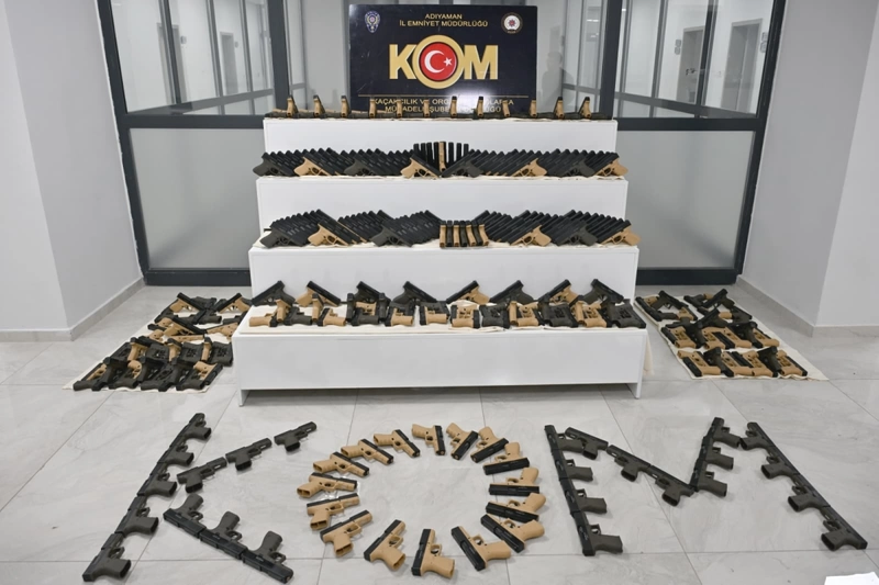 Adıyaman'da KOM Şube Müdürlüğü ile İstihbarat Şube Müdürlüğü ekiplerince yürütülen ortak çalışmalar sonucunda, kurusıkı olarak bilinen ses ve gaz tabancalarının ateşli silaha dönüştürülebilecek şekilde tasarlandığı tespit edildi. Yapılan operasyon kapsamında, S.Y. isimli kişiye ait işyerinde gerçekleştirilen aramada 1.000 adet tabanca ele geçirildi.