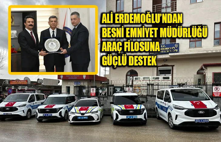Merinos AŞ Yönetim Kurulu Başkanı Hayırsever iş insanı hemşerimiz Ali Erdemoğlu’nun katkılarıyla Besni İlçe Emniyet Müdürlüğü’ne 5 yeni araç kazandırıldı.
