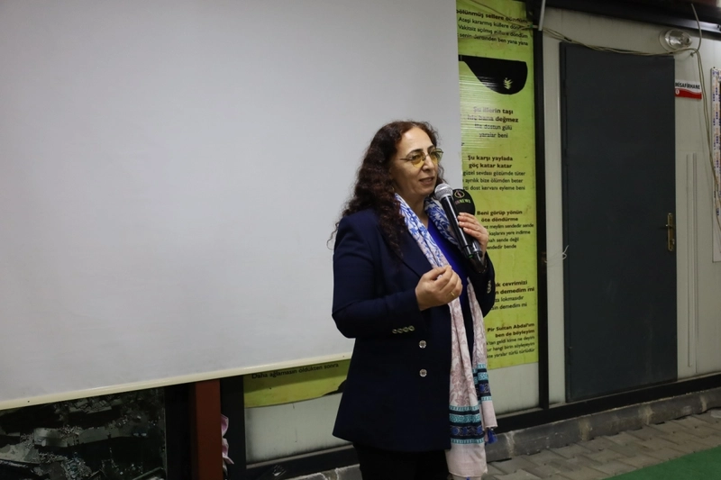Programda konuşan önceki dönem DEM Van Milletvekili ve DBP Parti Meclisi Üyesi Muazzez Orhan, kadınların kimlikleri, dilleri ve inançları üzerinden karşı karşıya getirildiğini belirterek bu yaklaşımın eril devlet aklının bir sonucu olduğunu ifade etti.