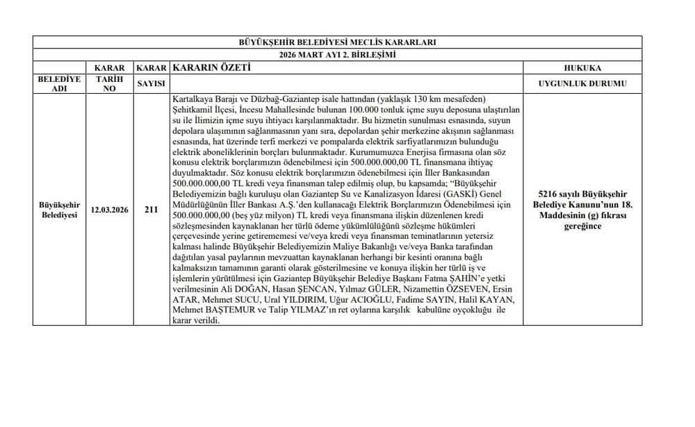 "Vatandaştan topladığınız su tüketim bedellerini enerji faturalarına yatırmadıysanız nereye harcadınız? Bu 500 milyon liralık elektrik borcu nasıl birikti? Burada yanlış bir planlama mı var, yanlış bir yönetim mi var, yoksa bilinçli bir popülist yaklaşım mı söz konusu? Vatandaşın verdiği paralar gereksiz alanlara mı harcandı?"
