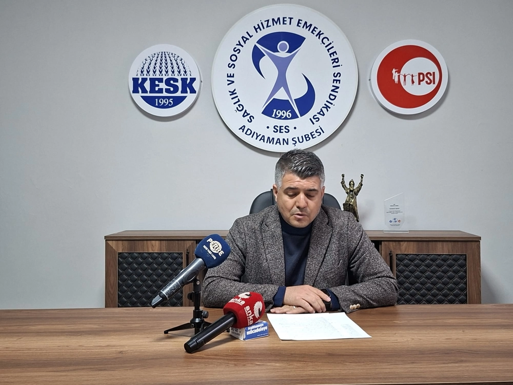 "Bizler SES Adıyaman Şubesi olarak özellikle depremden sonra bu kentin sağlık emekçilerinin ne kadar zor koşullarda çalıştığını çok iyi biliyoruz. Depremin üzerinden uzun zaman geçmesine rağmen hâlâ konteynerlerde hizmet vermek zorunda kalan sağlık emekçileri var. Sağlık hizmeti geçici mekânlarda, zor koşullarda sürdürülmeye çalışılıyor."
