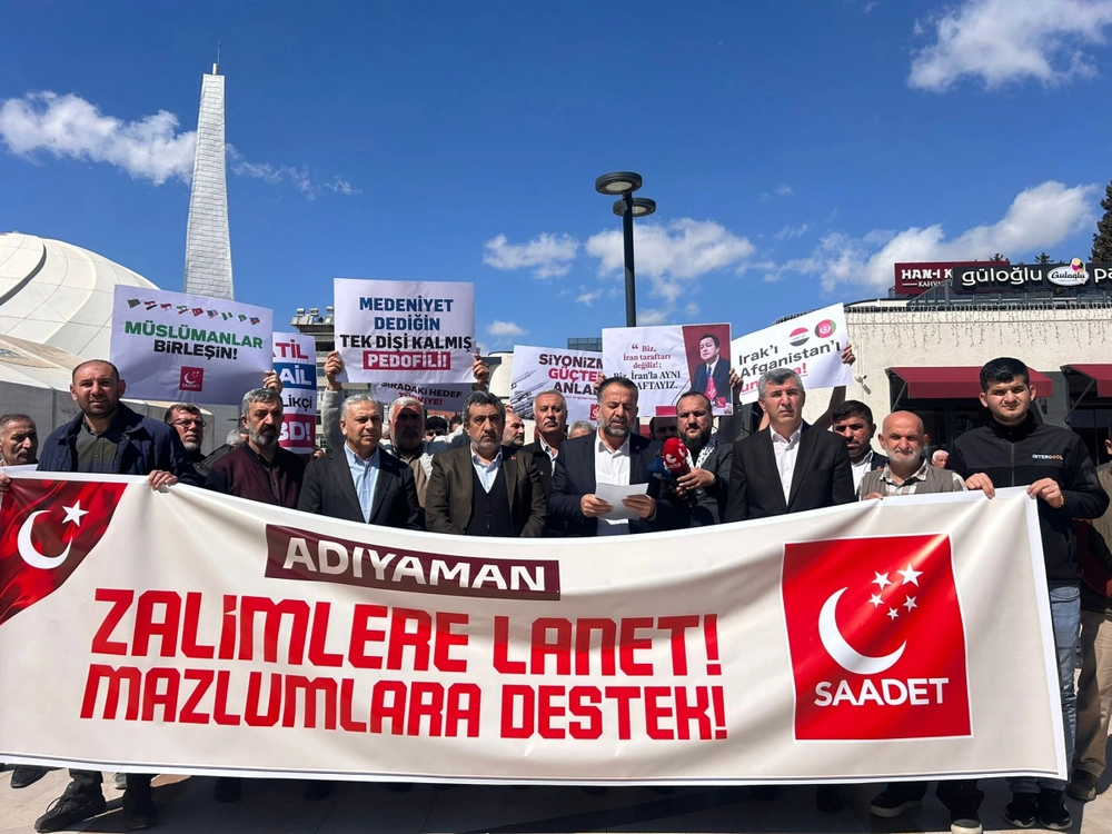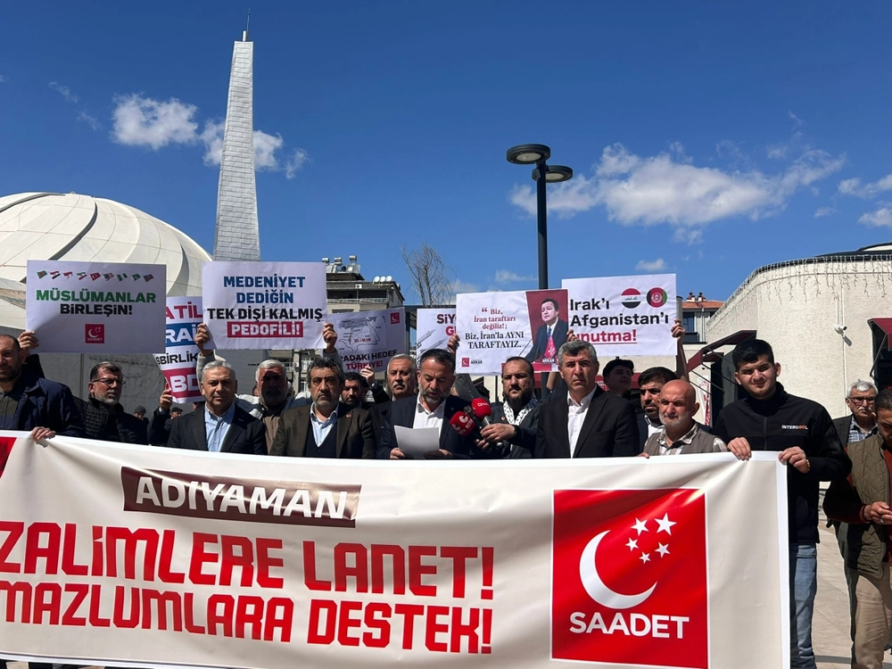 Saadet Partisi Adıyaman İl Başkanlığı, Gazze'deki saldırılar ve bölgedeki zulümlerle ilgili Kent Meydanı'nda basın açıklaması yaptı. Parti adına açıklamayı Saadet Partisi Adıyaman İl Başkanı Haşim Asnuk yaptı. Başkan Asnuk, açıklamasında Gazze'de aylardır devam eden çatışmalara dikkat çekerek, "Dünyanın gözü önünde tarihin kaydedebileceği en vahşi, en alçak soykırımlardan biri Gazze'de işlenmektedir. Bebeklerin süt kokusuna barut kokusunun karıştığı, annelerin feryadının arşı titrettiği bu topraklar, sözde modern dünyanın insan hakları maskesinin düştüğü yerdir" dedi.