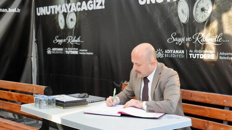 Adıyaman Valisi Osman Varol ve CHP Antalya Milletvekili Cavit Arı ile birlikte "Unutma" alanını ziyaret ederek çalışmaları yerinde inceleyen Adıyaman Belediye Başkanı Abdurrahman Tutdere, tüm hemşehrilerini bu ortak hafızaya katkı sunmaya davet etti.