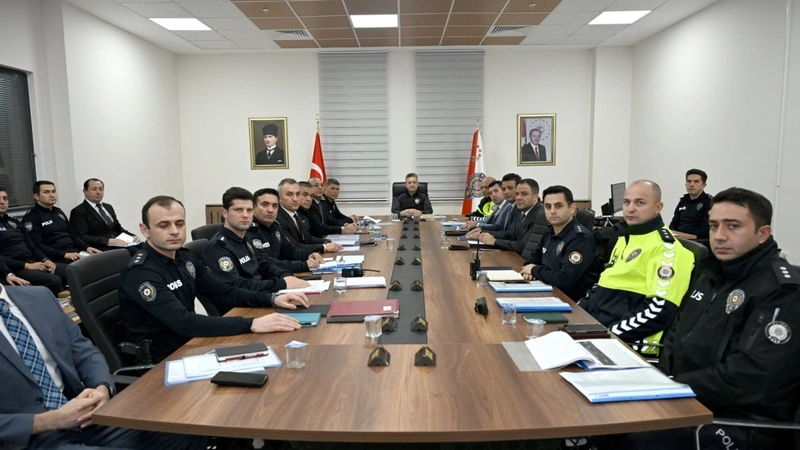 Adıyaman İl Emniyet Müdürü Arzum Nazman'ın başkanlığında, il genelindeki birim amirlerinin katılımıyla Yıl Sonu Değerlendirme Toplantısı gerçekleştirildi. Toplantıda, 2025 yılı boyunca emniyet teşkilatı tarafından yürütülen çalışmalar kapsamlı şekilde değerlendirilirken, sunulan hizmetlerin etkinliği ve verimliliği ele alındı. Ayrıca yaklaşan yılbaşı öncesinde vatandaşların huzur ve güvenliğini sağlamak amacıyla alınacak güvenlik tedbirleri detaylı şekilde görüşüldü.