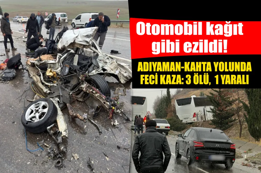 Kaza Adıyaman Kahta kara yolunda meydana geldi. Edinilen bilgilere göre bir otomobil ile bir otobüsün çarpışması sonucu meydana gelen kazada otomobilde bulunan 3 kişi hayatını kaybetti 1 kişi yaralandı.