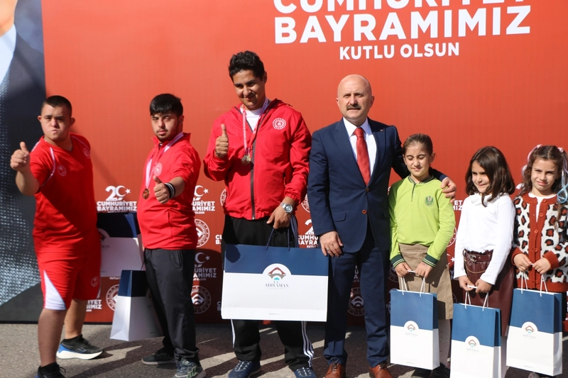 Adıyaman'da Cumhuriyet Bayramı kutlama töreni bugün Adıyaman Valiliği'nde düzenlenen tebrik kabulü ile başladı. Tebrik kabulün ardından ise Valilik önünde bayram töreni düzenlendi. Kutlama töreni, saygı duruşu ve İstiklal Marşı'nın okunmasıyla başladı. Öğrenciler tarafından şiirlerin okunduğu, halk oyunları gibi çeşitli gösterilerin sergilendiği törende, kompozisyon ve şiir yarışmalarında dereceye giren öğrenciler de Vali Osman Varol ve protokol üyeleri tarafından ödüllendirildi.