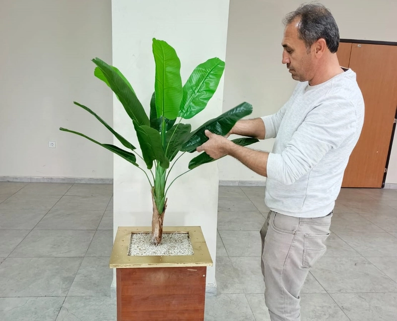 "Küçük tamiratlar yapmak elimden geliyor. Depoda işe yaramaz malzemeler olduğunu gördüm ve boş zamanlarımda değerlendirmek istedim. Bu konuda okul müdürümden izin aldım. Müdürümüz izin verdiği gibi zaman zaman bana yardım da etmeye başladı. Başta çiçek saksıları olmak üzere çeşitli malzemeler yaparak okulumuzun daha güzel görünmesini sağlıyoruz. Aynı zamanda milli servetin heba olmasını engelliyoruz. Yapay çiçekleri de farklı illerden hayırseverler ücretsiz olarak gönderiyor."