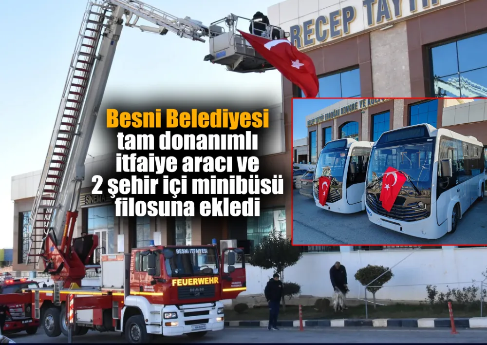 Yeni itfaiye aracı Besni’ye ulaşırken Başkan Alkan vatandaşların ulaşım sorununa katkı sunmak üzere 2 yeni şehir içi minibüsün daha araç filosuna eklendiğini duyurdu.