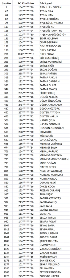 Buna göre kura ismi çıkan vatandaşların listesi şu şekilde oluştu.