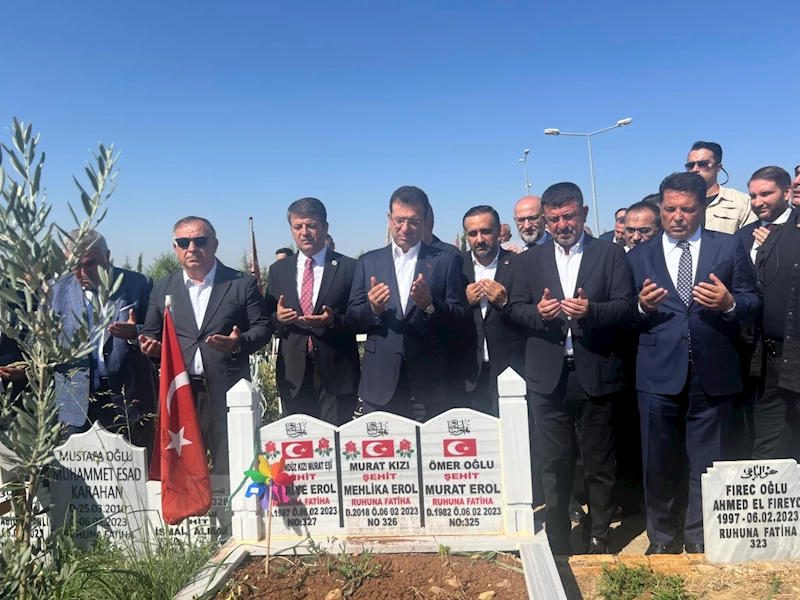 Ekrem İmamoğlu ve TBB heyetini Adıyaman Belediye Başkan Av. Abdurrahman Tutdere ve Belediye Başkan Yardımcılarıyla kalabalık bir heyet karşıladı. İlk ziyaret Deprem Şehitliğinde gerçekleşti. Adıyaman’da 6 Şubat’ta hayatını kaybedenlerin mezarlarını ziyaret etmek üzere Adıyaman Belediyesi şehir mezarlığı’ndaki deprem şehitleri ziyarete giden İstanbul Büyükşehir Belediye başkanı Ekrem İmamoğlu ve Türkiye belediyeler birliği heyeti burada kalabalık bir heyet ve partililerle birlikte çok sayıda vatandaşın da katılımıyla dualar okudular ve arkasından Türkiye Belediye Birliği meclis toplantısını yapmak üzere Adıyaman belediyesine hareket ettiler. Deprem şehitliğinden ayrılan İstanbul Büyükşehir Belediye Başkanı Ekrem İmamoğlu ve Türkiye belediyeler birliği heyeti Adıyaman Belediye Başkanı avukat Abdurrahman Tutdere’nin de katılacağı TBB meclis toplantısı için Adıyaman Belediyesi hareket etti