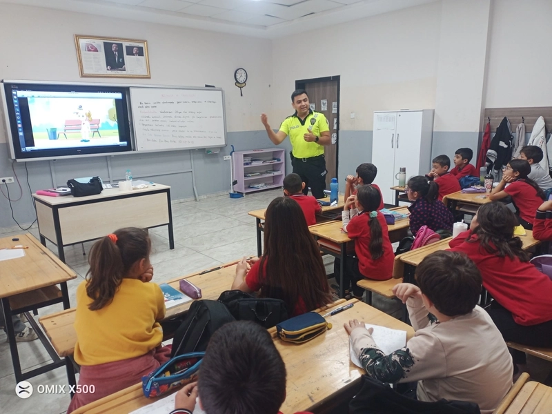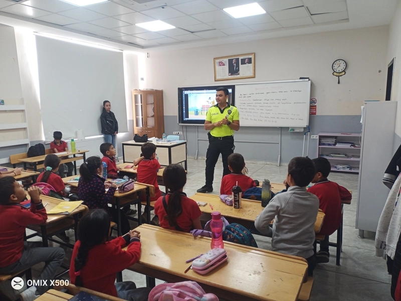 Trafik konularında farkındalık oluşturmak amacıyla polis araç ve gereçlerinin kullanımı öğrencilere gösterildi. Eğitim, öğrencilerin hem bilinçlenmesini hem de güvenli davranış alışkanlıklarını geliştirmesini hedefliyor.