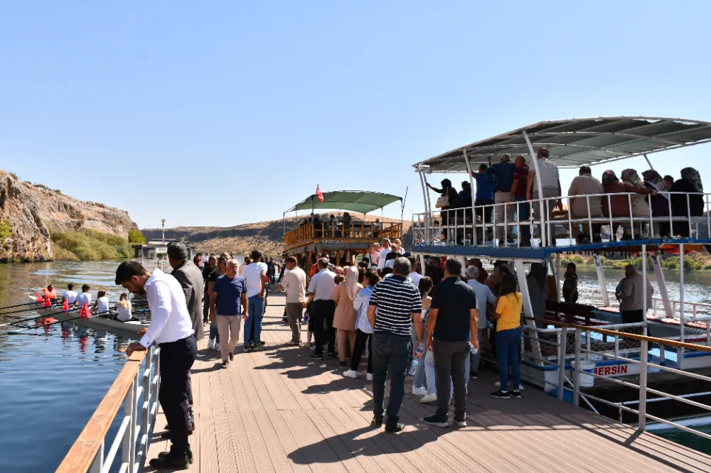 Açılışın ardından tekne turuyla tarihi Kızılin kanyonunun eşsiz güzelliğini keşfe çıkan heyet, özellikle tarihi mağaraları gezerek geçmiş medeniyetlerdeki insan yaşamlarını gözlemleme fırsatı buldu.