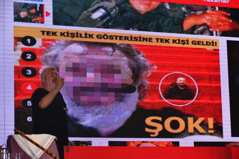 Müzikal bir gösteriyle başlayan “İtiraz Ediyorum” adlı gösteride sahne alan Müfit Can Saçıntı, filmlerindeki eğlenceli kapitalist sistem eleştirilerini sahneye taşıdı. Evlilikten eğitim sitemine, çalışma hayatından reklamlara kadar pek çok konuda eğlenceli itirazlarını dile getiren Saçıntı, güldürürken düşündürdü.