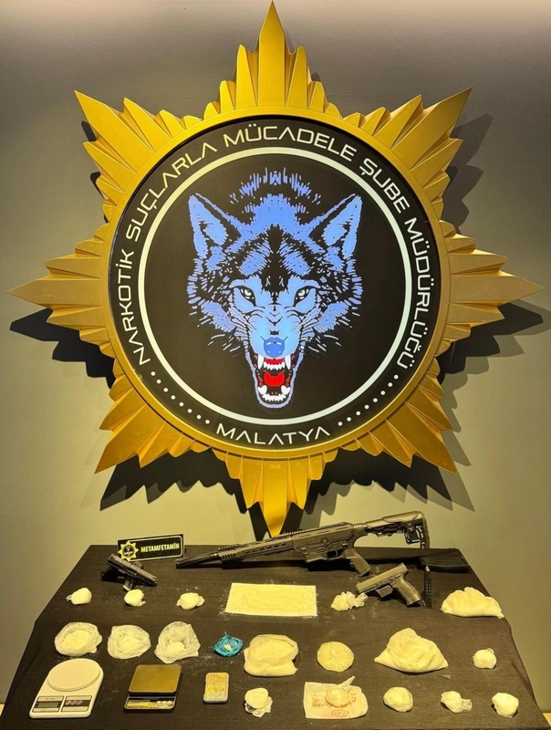 Belirlenen 2 ikamet ile 2 şüpheli şahsın üzerinde yapılan aramalarda;2.263 gram metamfetamin maddesi,2 adet ruhsatsız tabanca,1 adet ruhsatsız tüfek,3 adet hassas terazi ele geçirildi.