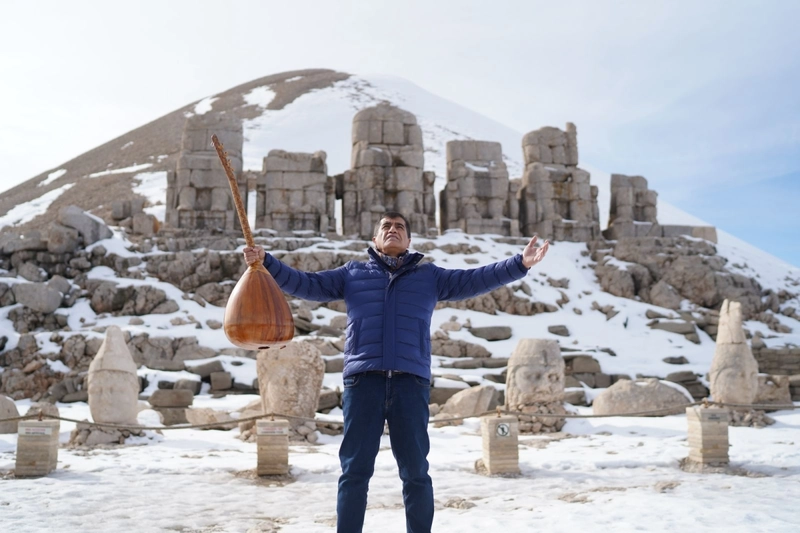 Nemrut Dağı'na tırmanan Aydın Aydın, yapay zekanın insana ait bilgileri toplayıp yine insana karşı kullandığını, pek çok mesleğin yok olma tehlikesiyle karşı karşıya olduğunu söyleyerek, müzik dünyasının da bundan ciddi biçimde etkileneceğini ifade etti. Ardından bağlamasını kayalara vurarak kırdı.