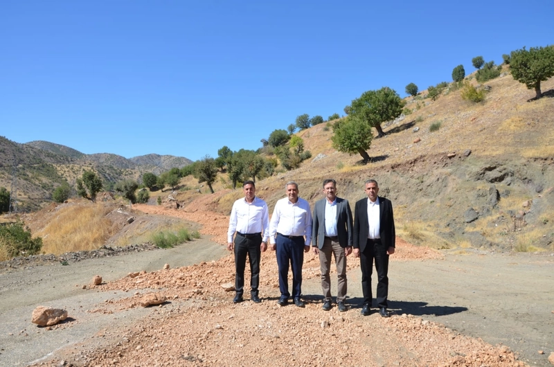 Sincik Belediye Başkanı Mehmet Korkut; AK Parti Sincik İlçe Başkanı Fikret Öksüz ve Sincik İl Genel Meclisi Üyesi ve Plan ve Bütçe Komisyonu Başkanı Mehmet Karaca ile birlikte Sincik-Çelikhan Grup Yolu asfalt çalışmalarının yapıldığı şantiye alanında incelemelerde bulunuyoruz.