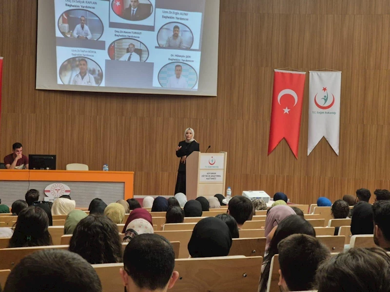 Toplantı salonunda düzenlenen " Genel Uyum Eğitimi" programına Sağlık Bakım Hizmetleri Müdürü Fahri Dağhan, Eğitim Hemşiresi Filiz Dİşkaya, Hasta Hakları Birim Sorumlusu Abidin Kaya, Enfeksiyon Kontrol Hemşiresi Seda Karadağ, İş Sağlığı Güvenliği Sorumlusu Neşe Erdoğan ve Çevre Sağlığı Teknikeri Yüsra Çiçekli ile öğrenciler katıldı.