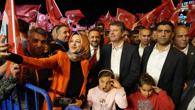 Konuşmaların ardından sahneye çıkan Mustafa Özarslan ve Güven Taştan, seslendirdikleri şarkı ve türkülerle binlerce vatandaşa coşku dolu bir gece yaşattı.
