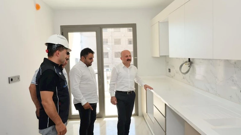 Adıyaman’da, 6 Şubat depremlerinden etkilenen vatandaşlar için İndere bölgesinde 16.467 kalıcı konut inşa edilmeye devam ediyor. 826 bloktan oluşan konutların geleceğe güvenle yükseldiğini belirten Adıyaman Valisi Dr. Osman Varol, Emlak Konut tarafından yürütülen inşaat çalışmalarını yerinde inceledi. Özbek inşaat firmasının çalışma sahasında devam eden çalışmaları inceleyen Vali Varol, yapımı tamamlanan örnek daireyi de gezdi.