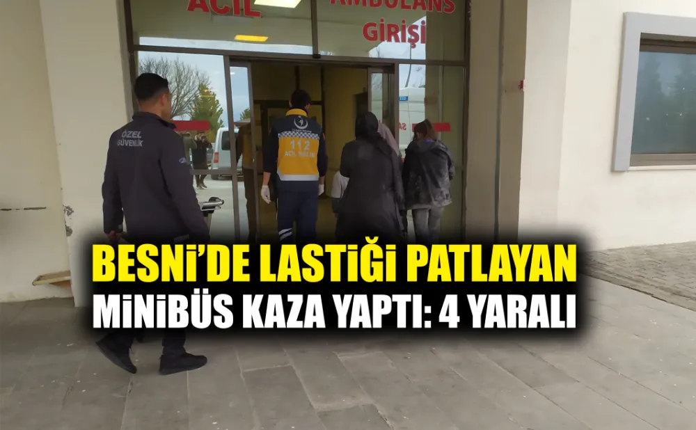 BESNİ’DE LASTİĞİ PATLAYAN MİNİBÜS KAZA YAPTI: 4 YARALI